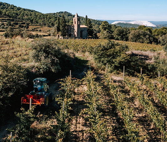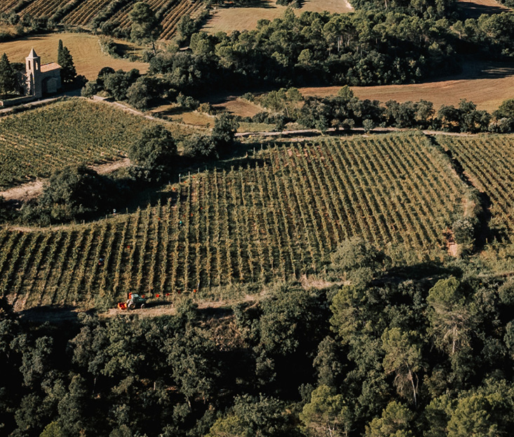 A més de recuperar antigues vinyes de macabeu i sumoll, hem tornat a plantar vinya al voltant de la Masia. Hem seleccionat el terreny buscant respectar la biodiversitat del nostre territori, actualment composat per boscos de pi blanc, alzines i roures, boix, farigola, romaní, camps de cereals, oliveres i ametllers i recuperant els bancals amb marges de pedra seca típics del Bages. Les varietats escollides són les que ja existien a la propietat a finals del segle XIX (picapoll, macabeu, sumoll, mandó i garnatxa).