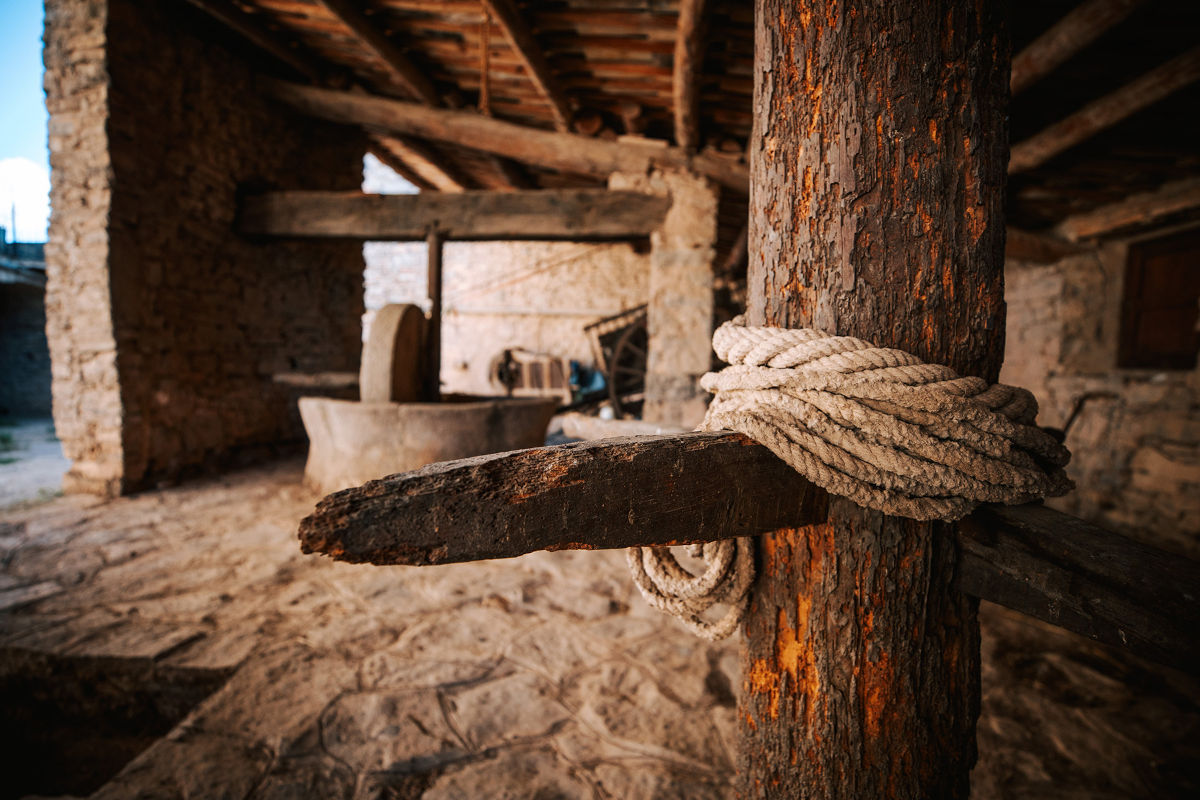El nostre celler està excavat sota terra: trascolem el raim per gravetat i disfrutem de la màxima estabilitat de temperatura de forma natural.