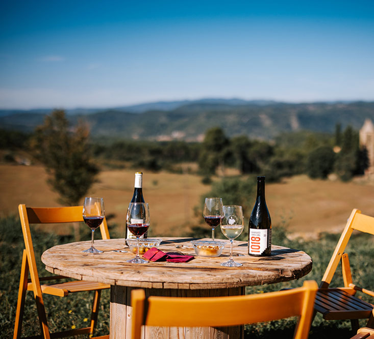 El Passeig dels 5 Sentits és un recorregut sensorial, lúdic, interactiu i exclusiu: visita guiada pels voltants del celler, passejada, tast d’oli, formatge, dos vins (1018 blanc i 1018 negre), fruits secs i algunes sorpreses olfactives.
